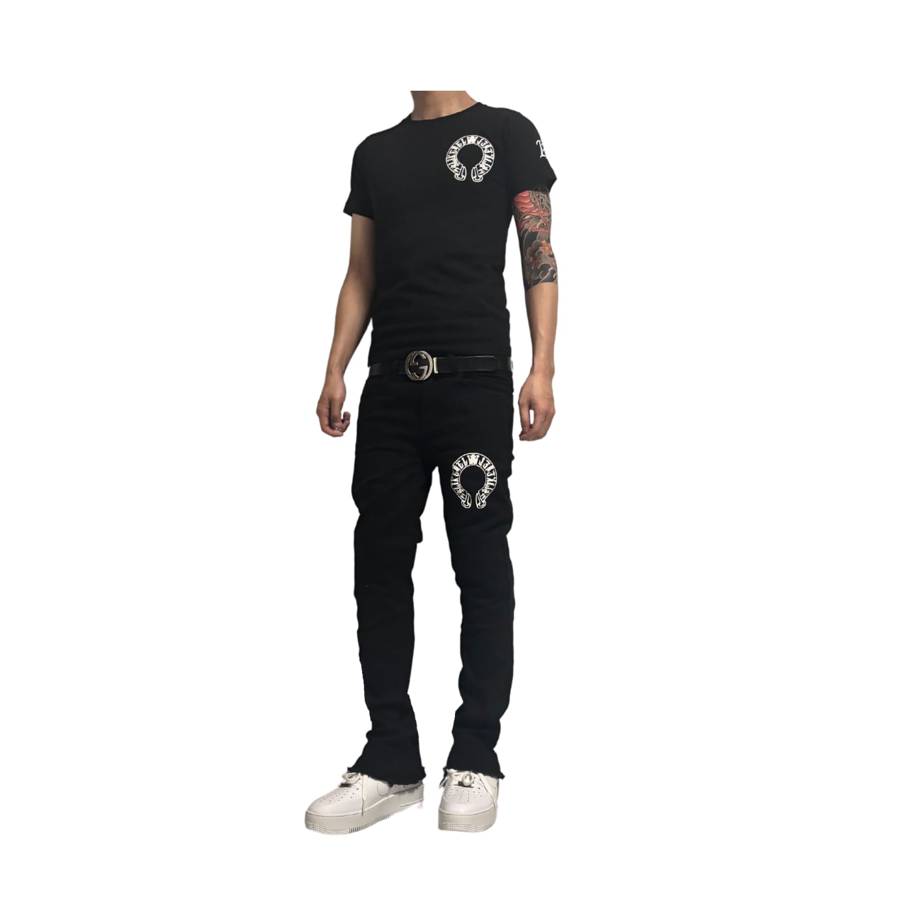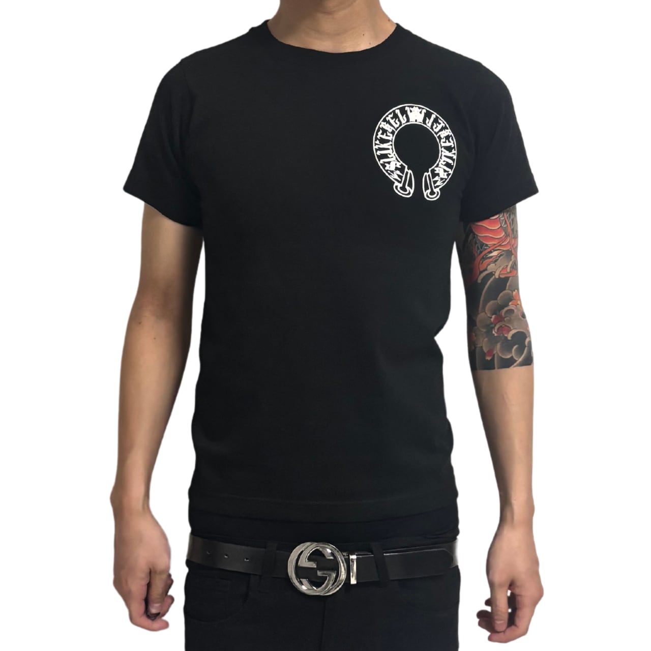 ジャストも良し。1サイズ下げて攻めるのもアリ。胸元のcircle、肩のブランドロゴで“ハズし”も効かせて。
